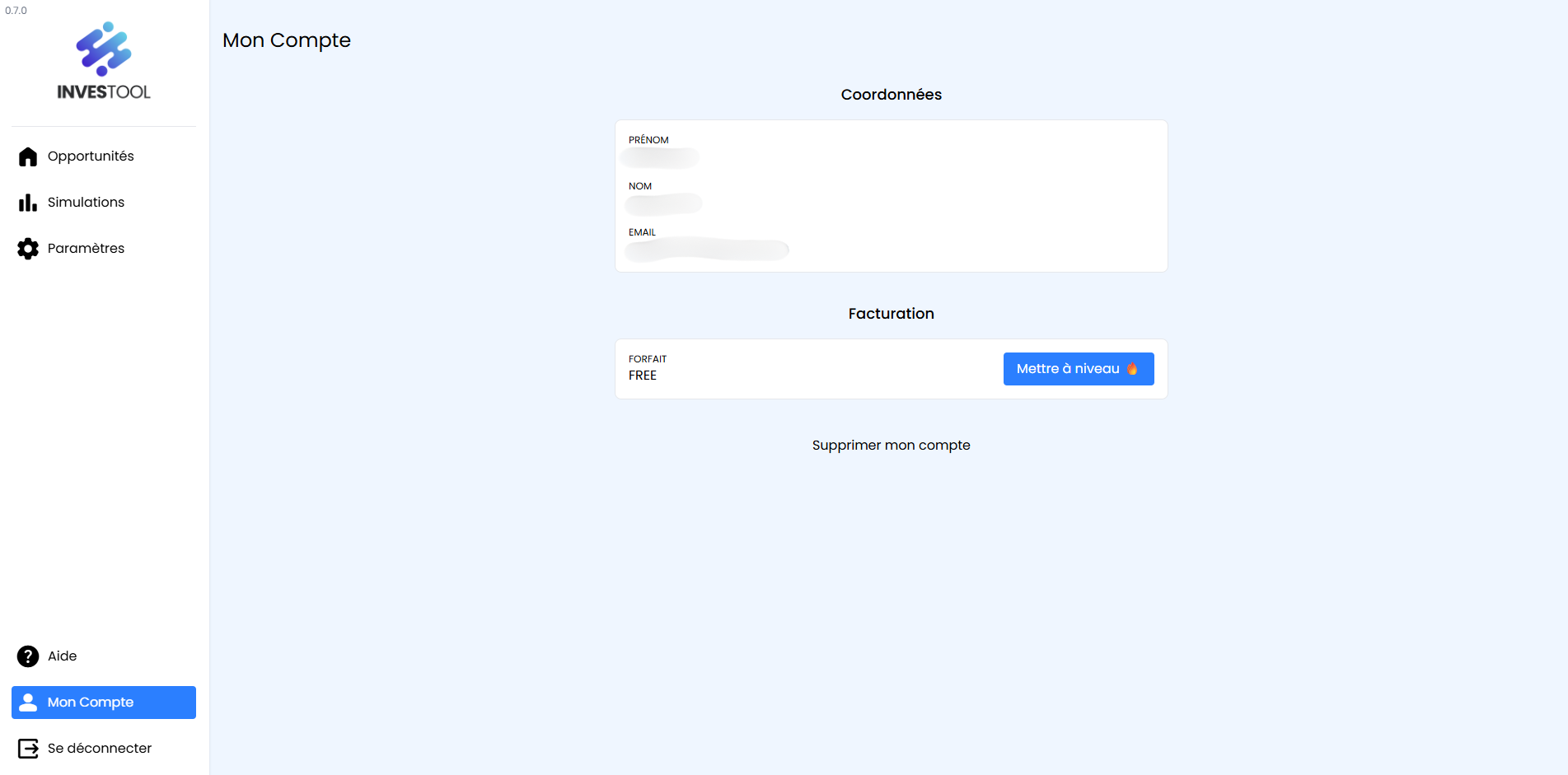Mettre à niveau mon compte