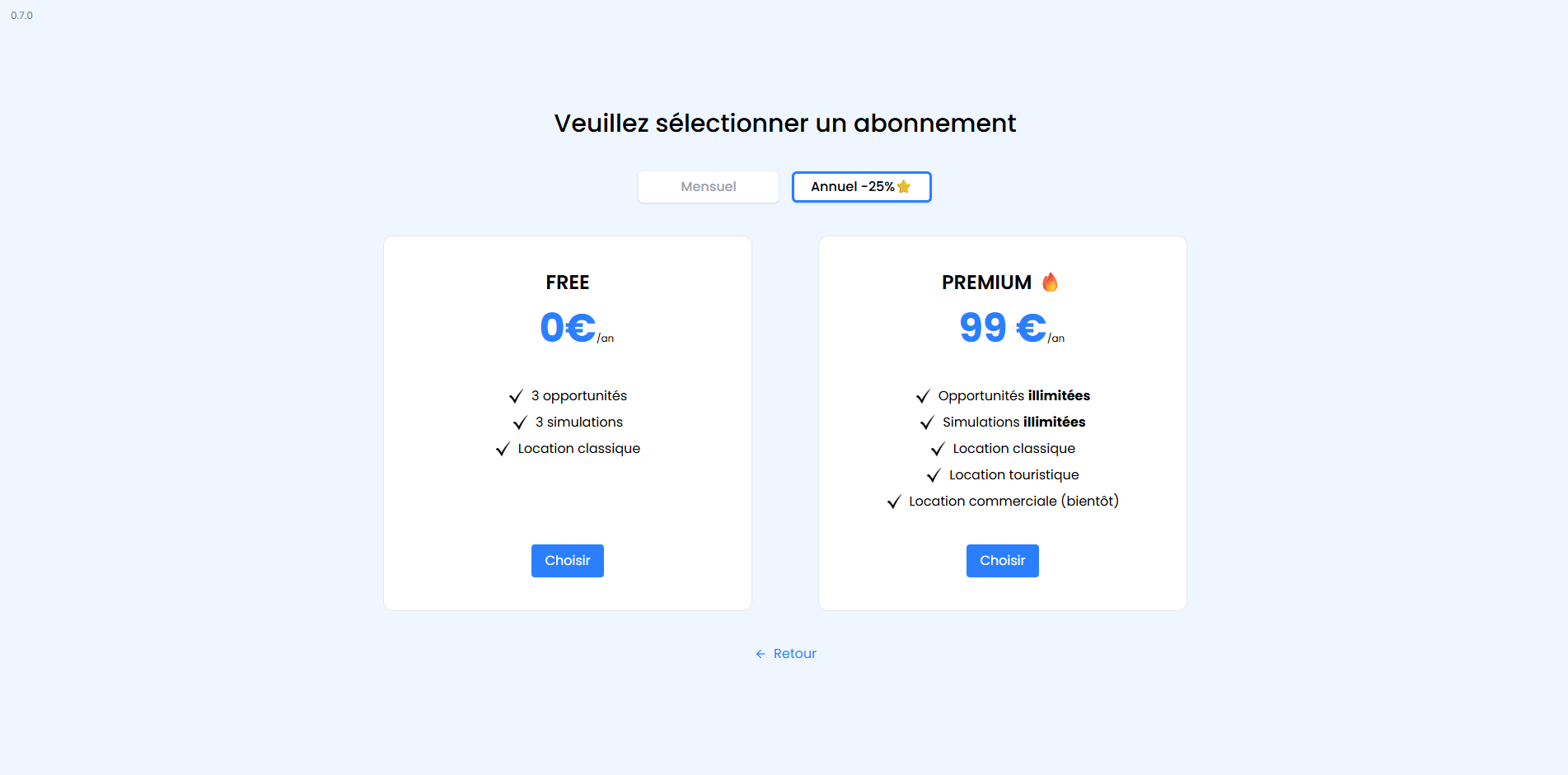 Vous avez le choix entre un abonnement sans engagement mensuel ou annuel. Suivez les instructions pour procéder au paiement.