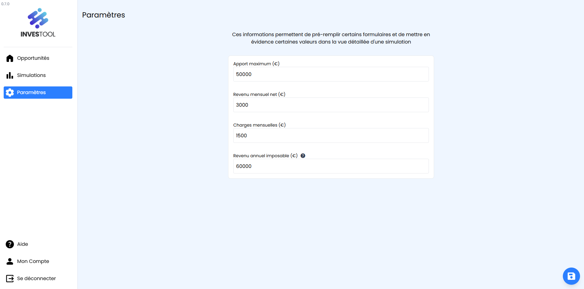 Ce montant sera utilisé par défaut dans le champ « Revenu annuel imposable » lors de la création de nouvelles simulations.