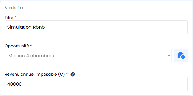 Remarque: pour ajouter une simulation, vous pouvez également aller sur la page d’une opportunité et cliquer sur le bouton « ajouter une simulation ».