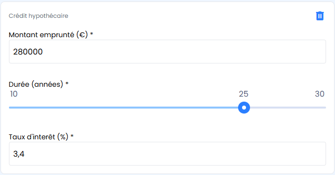 Cliquez sur le bouton « Crédit hypothécaire » pour faire apparaître le bloc.