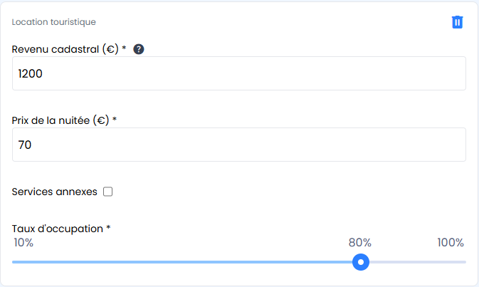 Pour que la simulation soit valide, vous devez choisir au moins une location entre « Location classique » et « Location touristique ».
