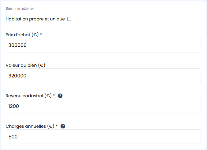 Cliquez sur la case à cocher si le bien sera votre seul bien immobilier et votre résidence principale. Dans le cas contraire, ne cochez pas la case.